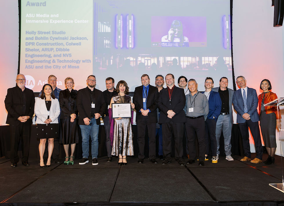 Three Holly Street Studio projects were recognized at the annual AIA Arizona Design Excellence Awards at the Heard Museum in November. The ASU Media and Immersive eXperience Center won a Distinguished Architecture Award and the prestigious Goodwin Collaboration Award, which celebrates exceptional collaborations between architects, construction partners, and clients.